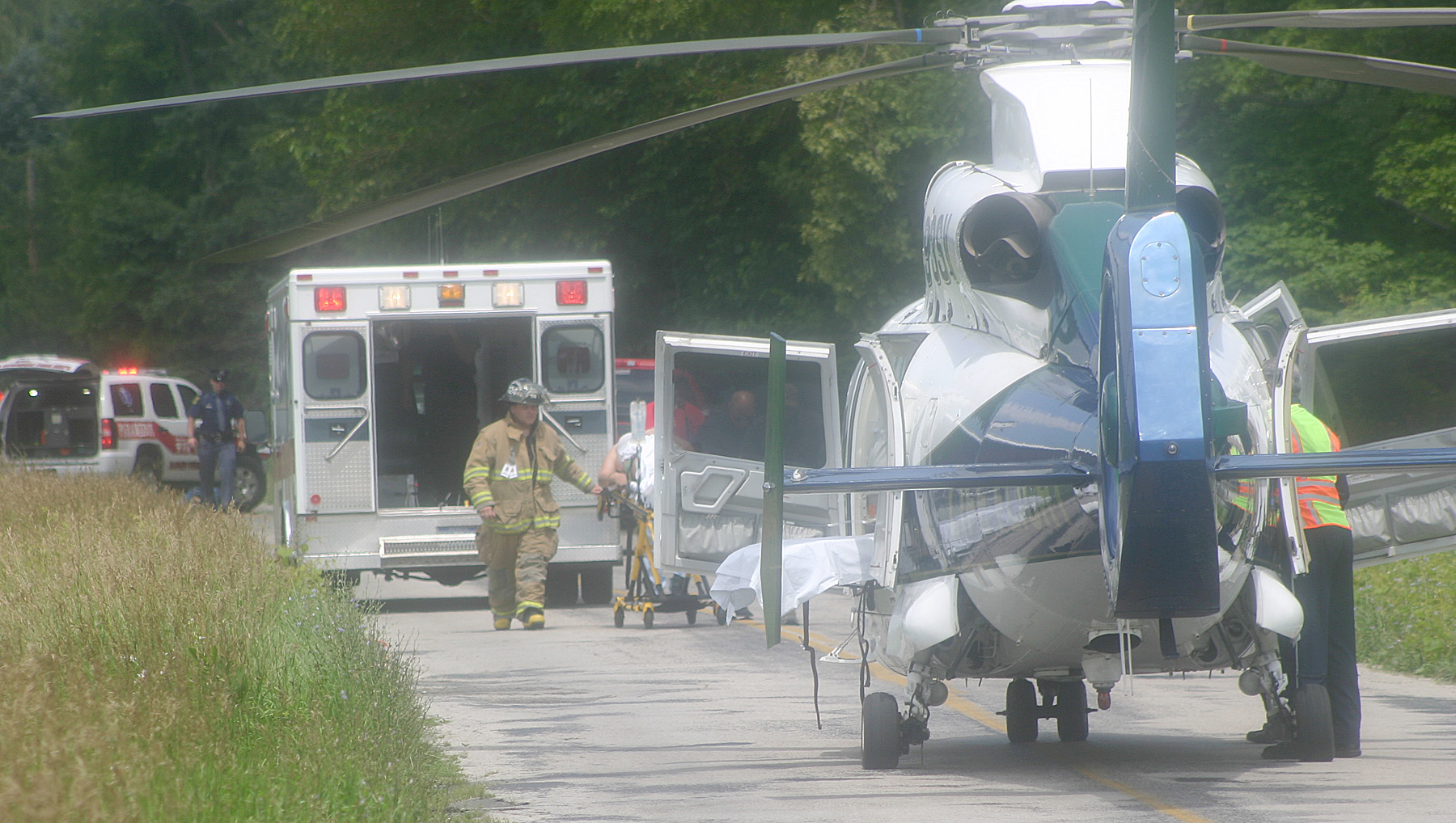 Michigan State Police troopers at the scene said they were still trying to determine what happened . At the time, troopers said, there were no witnesses who had come forward and no visible signs of a crash such as skid marks or debris. LifeFlight landed on the road and later transported the woman to an unknown hospital.